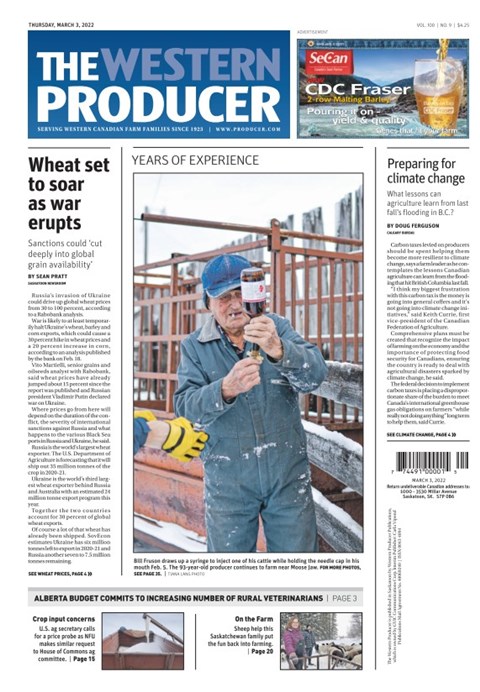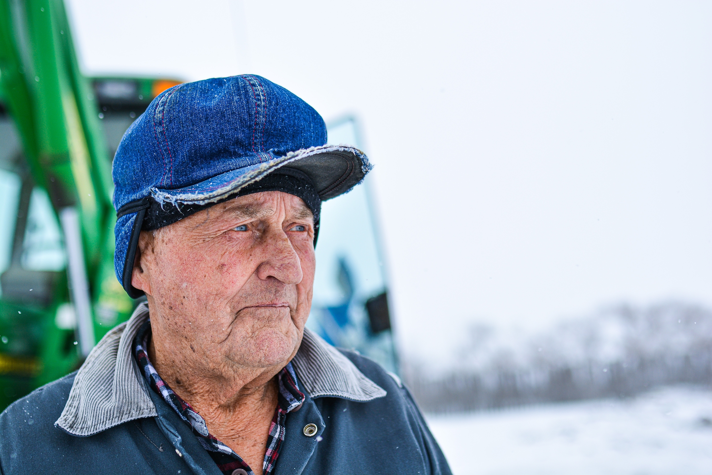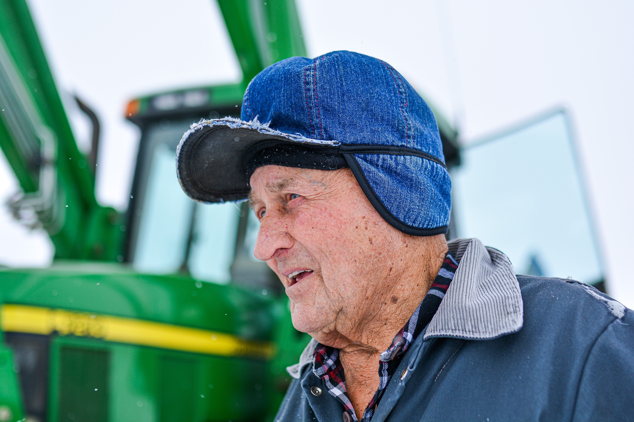 93-year-old cattle farmer William (Bill) Edgar Fruson near Moose Jaw SK. on Feb. 5, 2022. Fruson’s farm was founded in 1978 on a barren grassland pasture. (Photo by Tiana Lang)